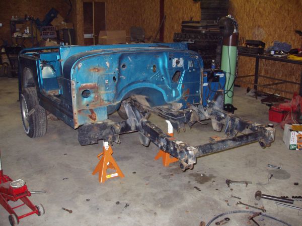 My dad wheels his stock CJ around the ranch and took it to Gilmer with me once. It couldn't hang with the Scout ;) and he caught the bug. He decided he wanted to buy a built CJ to wheel hard and keep his stock for ranch driving. After having a couple of deals fall through, he decided he wanted to build his CJ up. After contemplating having to drive a lifted jeep everytime he wants to ride around and evolving plans from a simple one ton swap to a full on build, we decided to build a YJ/CJ instead and keep the other stock. So, I give you, project "Ranger One". The stock CJ will be demoted to "Ranger Two".