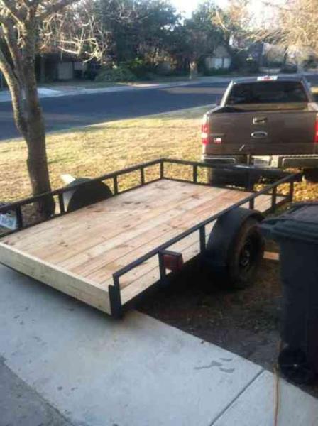 This the Frick's Dads old 6x10 tilt Jeremiah and I bought for the Ranger. Primed and painted the whole thing, all new wiring and lights, new 2x8s, weather sealed, moved the spare and a few other things. Plan to get the wheels mounted this week. I need to weld some d rings on and I would also like to find some mesh or something to put on the sides