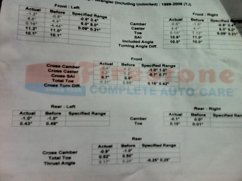 Confused. If Firestone did the alignment, and you have an alignment problem, then why haven't you taken it back to them? Cardoc has an alignment rack as well. Have them check the alignment as well describing to them the problems you are having.