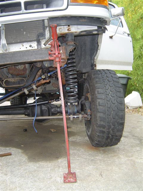 Got some more done tonight. Filed some threads. Got the brake lines off. Got the axle a little more in place, and strapped in that place. got rid of a wasps nest in the door jam (first one) gotta decide which way to flip the trac bar - anyone actually have any experience with this app? I am gonna post it up in FSB, and see what I can sift from that as well. pics in a sec.