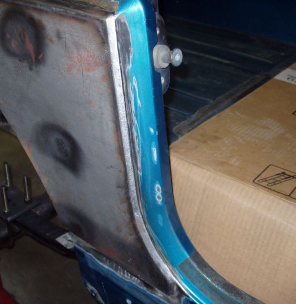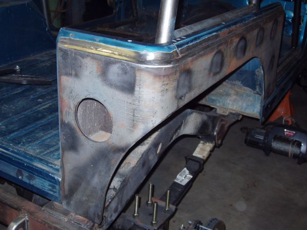 I had planned to build my own comp corners but in the interest of saving some time I ordered a set from BTF. I like the line they follow around the corner and had I built my own they would have turned out very similar. After Fed Ex lost them and took two weeks to get them here, I test fit them and was not too happy with the way the "CNC" bent radius fit the corner of the tub. There was about a 3/16" gap due to the radius being to tight. No big deal, but I'm anal like that. In fairness to BTF they were more than willing to exchange them for another set, but rather than wait for the turn around, I decided to weld them on rather then bolt them on like I had planned. I am very happy with how that turned out. They look much less "bolted on" this way and once painted will be mostly invisible. One thing I didnt like about the design is how far it was cut in the back. They come in past the outside of the framerail. I wanted some of my bumper left and didn't want it sticking out past the fender. Purely for aesthetics, I added some to them. This will also give me room to add another light. I had to trim the bumper down and relocate the body mount inside the framerail. When I built the bumper, I wasn't planning on stretching the wheelbase quite so much, but in retrospect I am glad I did it. Anyhow, enough jibberjabber, here's the pics.
