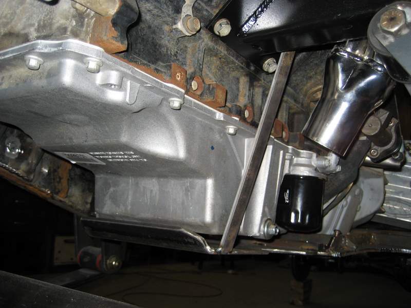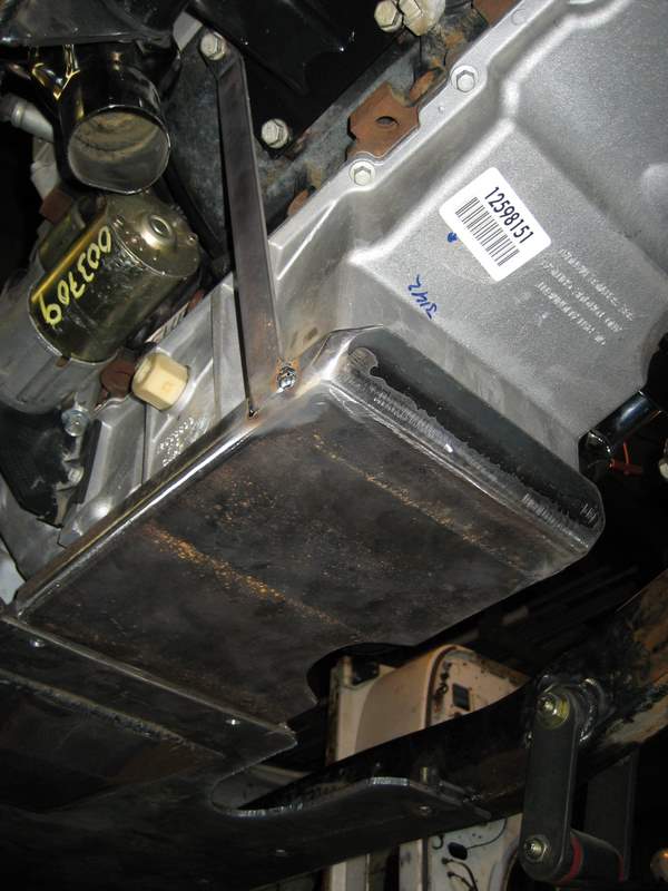 Part II - the only way that the oil pan will crack will be from a "point" syle impact (a sharp point going into the middle of it). Even if for some reason, a rock was able to get past the frame, leaf springs, driveshaft, and front axle to bend the skid plate up - it will hit the oil pan as a flat surface and distribute the load across the entire oil pan. The majority of the energy from the hit will be absorbed in the bending of the skid support arms resulting in a minimal amount of force hitting the oil pan.