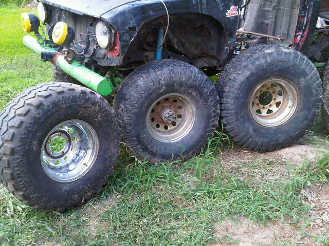 - 35" tires, granted they hold air, the 2 front are Truxus, the rears are Mickey Thompson's, pretty old, pretty shatty