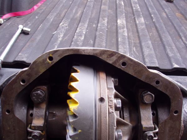 Again, the reason I bought covers in kit form instead of welded is because I was going to cut and plate the bottom and machine the ring gear O.D. This gives somewhere in the neighborhood of 2.5", IIRC, of added clearance. After considering that it wont be my rig to wrench on, my dad doesnt like turning wrenches, and any repairs will most likely be done by normal auto shops in Mt. Pleasant, I decided to forego the severe trim and leave the ring gear in stock form. I still gained a good 1.5" or so. There's a lot of beef to be cut away there. It's not a 14 bolt anymore.